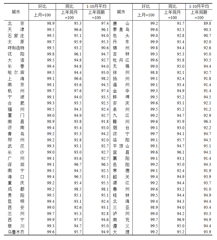 一、最新70城房价出炉 北京10月新房下跌0.10%二手房下跌1.10%