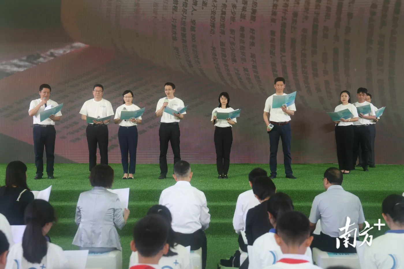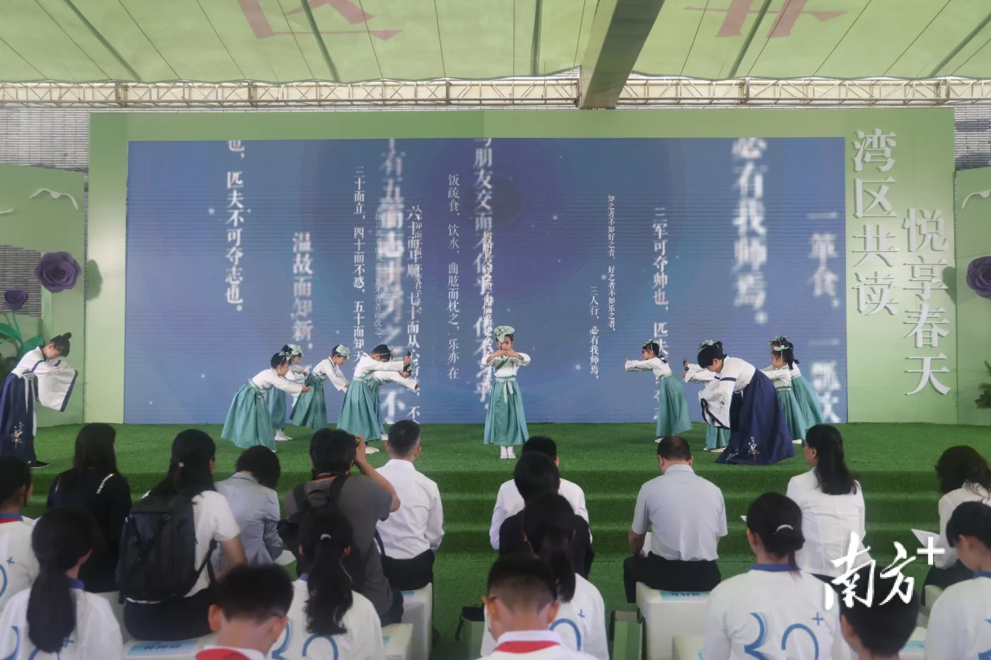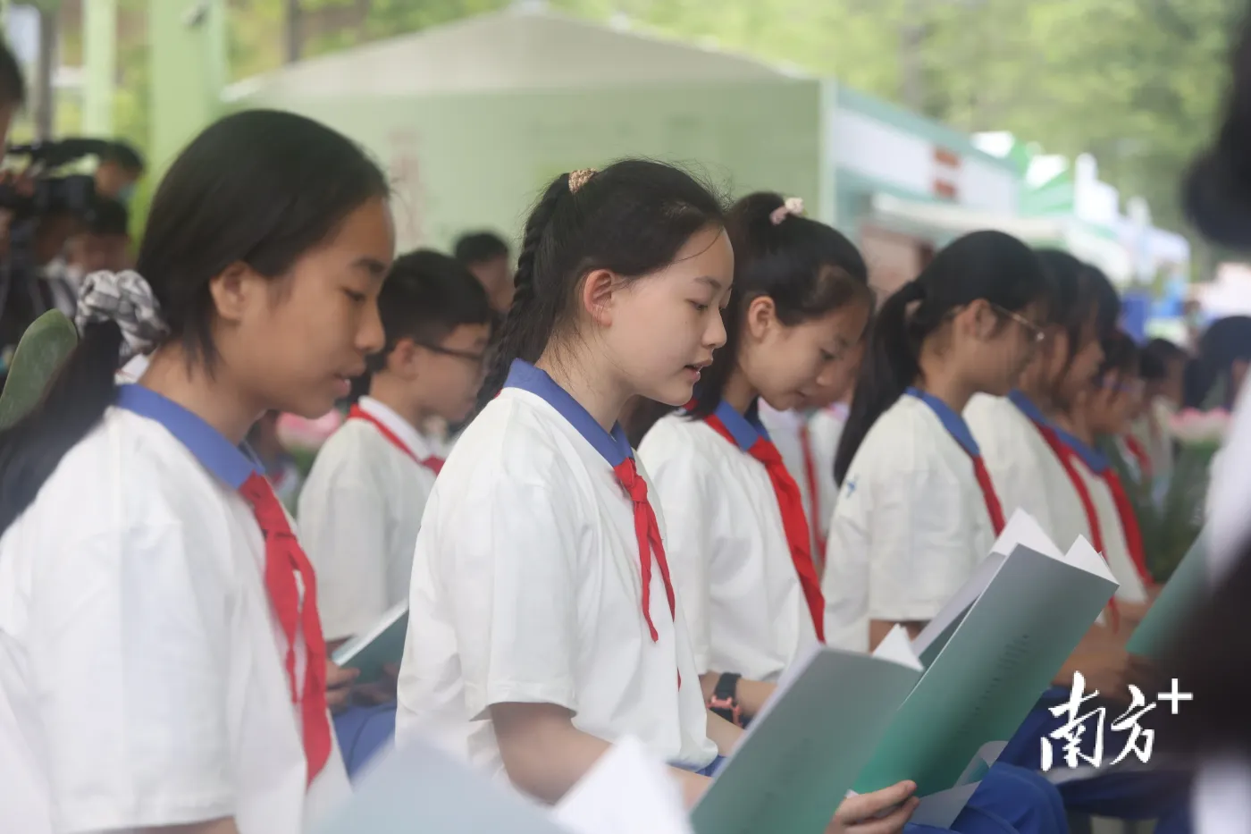 广州主会场阅读活动在广东省立中山图书馆举行。活动以童声诵读古诗引出“春来潮涌”“书香致远”“追光逐梦”“奋楫扬帆”等四个主题篇章,由青年党员、团员及青少年读者共同领读了《写给春天的诗行》《最是书香能致远》《盛开》等正能量诗文,以饱满的精神面貌学习贯彻党的二十大精神,透过琅琅书声发出投身广东高质量发展浪潮的青春宣言。