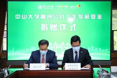 4月21日,融创华南区域集团与中山大学签署捐赠协议,通过融创公益基金会向中山大学捐赠3500万元,设立 “中山大学融创公共卫生发展基金” ,用于中山大学公共卫生人才培养、师资队伍建设、学科建设、国际合作、学生奖助金等工作。 融创与中山大学签订捐赠协议 中山大学党委书记、基金会理事长陈春声,中山大学副校长、基金会副理事长肖海鹏,中山大学公共卫生学院院长郝元涛,中山大学公共卫生学院(深圳)院长舒跃龙,融创中国执行董事、执行总裁兼华南区域集团总裁黄书平等嘉宾出席了此次捐赠仪式。 融创中国执行董事、执行总裁兼华南区域集团总裁黄书平现场致辞 “2020年新冠疫情突如其来的爆发,是对全人类公共卫生体系前所未有的挑战。我知道,疫情发生后,中大公卫学院有许多师生一直奔忙在线,不仅积极参与具体抗疫工作,还同时开展国际同行携手抗击疫情的合作交流”,融创中国执行董事、执行总裁兼华南区域集团总裁黄书平表示,中山大学作为国内一流、国际知名的现代综合性大学,尤其在医疗教育、公共卫生教育等领域都具有强大的学术能力,拥有国家生命科学与技术人才培养基地,此次融创与中山大学共同创立“中山大学融创公共卫生发展基金”,既着
