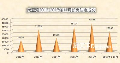 大亚湾,很以来都是深圳人的“购房天堂”,有没有一天会变成真正度假天堂、购物天堂?虽然,可能要经历一个漫长的过程,但却并非不可能。 长期来,人气成为困扰大亚湾发展的一个大问题。大亚湾走的是规划在前,发展在后的路线。多年来,房地产一直占据着举足轻重的地位。同时,由于本地购买力不足,商品房市场严重依赖深圳客户。据相关机构统计,大亚湾90%的购房客源自深圳。 而这批深圳客户反倒成为了制约大亚湾发展的关键因素,也就是我们前面提到的人气。大亚湾从1993年5月成立时,约有10万人口,至今,常住人口也不过20.58万人。也就是说,发展了20多年,人口增幅大概10万左右。相比起大亚湾卖出的房子,这个数字确实显得“寒碜”。 据房天下综合整理(原始数据来源于中原战略研究中心),单单从2012年到2017年11月,大亚湾新房住宅成交量达到172056套。如果按三口之家的标准算,光是这6年,理当可以给大亚湾增加50万以上的人口。 假如真有一天,这17万户、50多万人住进了大亚湾,那么,《惠州市大亚湾地区分区规划(2007-2020)》里面提到的将大亚湾人口规模控制在80万就能实现。一旦实现了人口规模,那么,