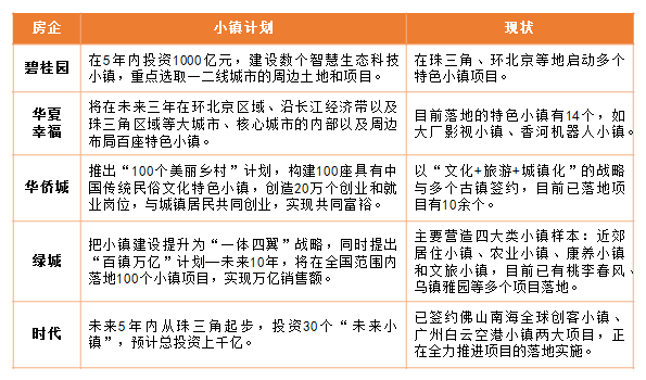 数量:超过20家房企提出小镇计划,落地项目80余个