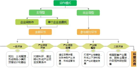► 单一企业主导:在文旅、新兴产业等特色领域运营优势显著,具备小镇建设全链条服务条件的房企,可以全委托为主。典型可借鉴华夏幸福和华侨城。华夏幸福从产业研究规划、产业集群集聚、产业载体建设到产业服务运营提供全链条的产业升级综合解决方案,委托服务期限长达30年;华侨城将“文化+旅游+城镇化”“旅游+互联网+金融”的创新发展模式植入小镇建设,以创意、管理和资本介入,打造产城一体化的特色小镇。