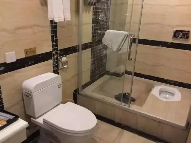 虽然说把蹲便器安装在淋浴房里可以节省空间,也能节水,但把蹲便器装在淋浴房里,洗澡的时候,香皂和洗护用品要是一不小心掉地板,岂不是直接溜到蹲便器坑里了。
