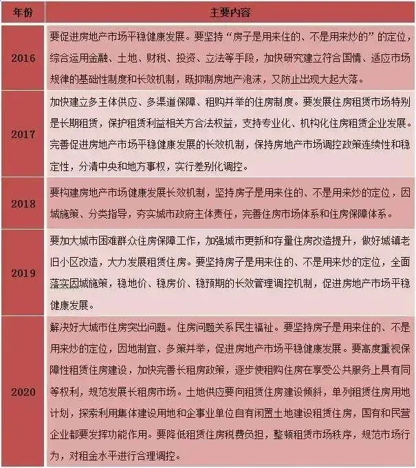 附表:2016年以来中央经济工作会议有关房地产方面表述