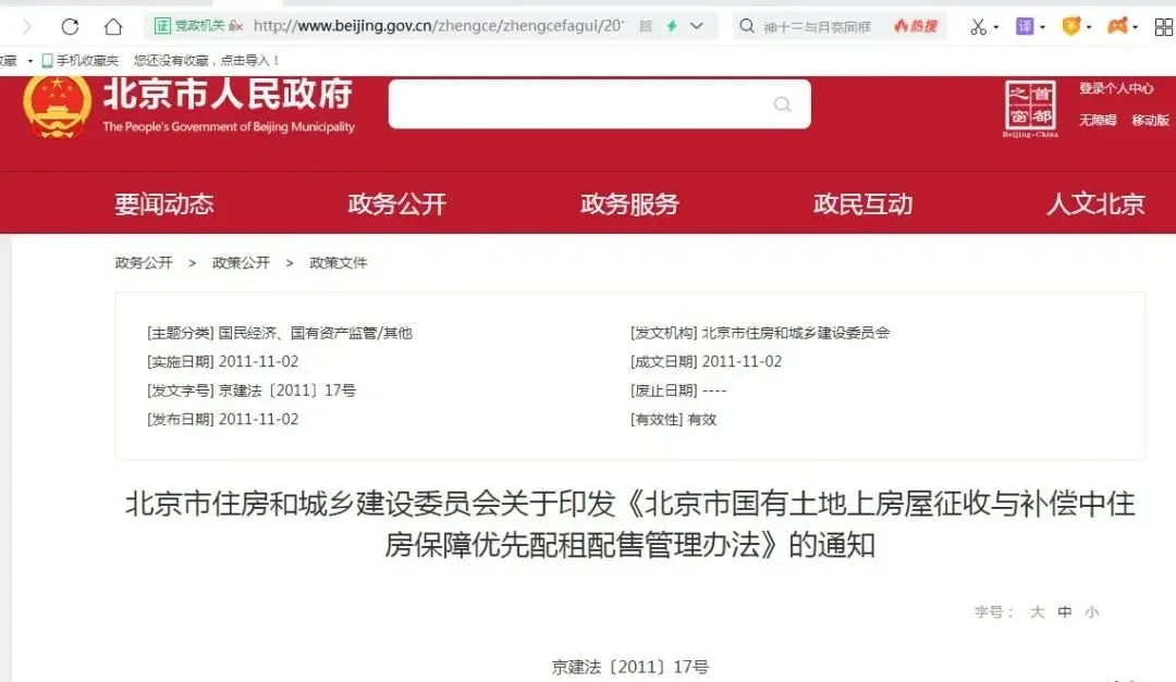 北京市国有土地上房屋征收与补偿中住房保障优先配租配售管理办法