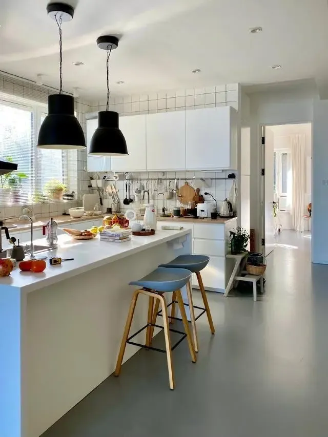 餐厅的采光也非常的好,打造了开放式厨房,特地打造了卡座,方便好友聚会。虽然厨房东西多,但是每处都打理得非常整洁。