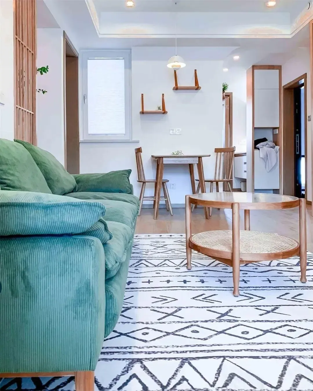 原本的客餐厅相对比较拥挤,大白墙+木作的搭配,大大拉升了整体的空间感。