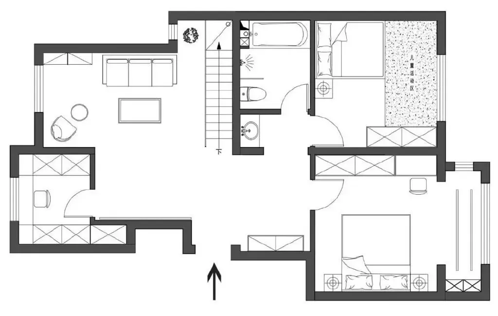 ●二层作为主人家的休息空间,原本的功能区安排不太合理,需要重新分配。