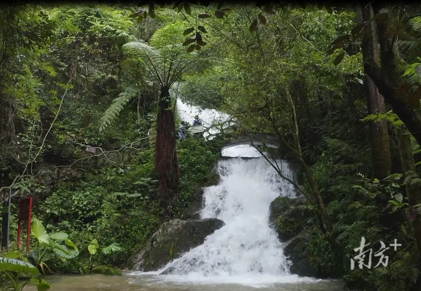 “桫椤起源于3亿多年前侏罗纪时代,比恐龙的出现还早1.5亿年,也是恐龙的主要食物。在中生代的时候,曾遍布于地球之上。后来经过地壳运动,大部分的桫椤就先后覆灭了,只有南岭等极少数区域的桫椤幸存了下来,所以非常珍贵,被称为植物活化石。在我们瀑布画廊里面,大概生长有30棵这样的桫椤,成为我们这里的一道独特风景。”当地工作人员说。