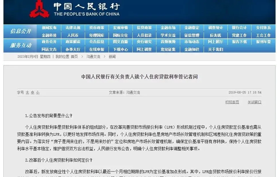 个人住房贷款利率是贷款利率体系的组成部分,在改革完善贷款市场报价利率(LPR)形成机制过程中,个人住房贷款定价基准也需从贷款基准利率转换为LPR,以更好地发挥市场作用。同时,个人住房贷款利率也是房地产市场长效管理机制和区域差别化住房信贷政策的重要内容。为落实好“房子是用来住的,不是用来炒的”定位和房地产市场长效管理机制,确保定价基准平稳有序转换,保持个人住房贷款利率水平基本稳定,维护借贷双方合法权益,人民银行发布公告,明确个人住房贷款利率调整相关事项。 改革后,新发放商业性个人住房贷款利率以最近一个月相应期限的LPR为定价基准加点形成。其中,LPR由贷款市场报价利率报价行报价计算形成。每笔贷款具体的加点数值由贷款银行按照全国和当地住房信贷政策要求,综合贷款风险状况,在发放贷款时与借款人协商约定。加点数值一旦确定,整个合同期限内都固定不变。 目前,LPR有1年期和5年期以上两个期限品种。1年期和5年期以上的个人住房贷款利率有直接对应的基准,1年期以内、1年至5年期个人住房贷款利率基准,可由贷款银行在两个期限品种之间自主选择。参考基准确定后,可通过调整加点数值,体现期限利差因素。 利率重定价是指,贷款银行按合同约定的计算方式,根据定价基准的变化确定形成新的贷款利率水平。公告明确个人住房贷款利率重定价周期可由双方协商约定,最短为1年,最长为合同期限。借款人和贷款银行可根据自身利率风险承担和管理能力进行选择。每次利率重新定价时,定价基准调整为最近一个月相应期限的LPR。 公告主要针对新发放个人住房贷款利率,存量个人住房贷款利率仍按原合同执行。定价基准转换后,全国范围内新发放首套个人住房贷款利率不得低于相应期限LPR(按8月20日5年期以上LPR为4.85%);二套个人住房贷款利率不得低于相应期限LPR加60个基点(按8月20日5年期以上LPR计算为5.45%),与当前我国个人住房贷款实际最低利率水平基本相当。同时,人民银行分支机构将指导各省级市场利率定价自律机制及时确定当地LPR加点下限。与改革前相比,居民家庭申请个人住房贷款,利息支出基本不受影响。 2019年10月8日是定价基准转换日。在此之前,贷款银行需修改贷款合同,改造升级系统,组织员工培训,同时,采取各种方式为客户做好宣传解释工作,以确保转换过程平稳有序。2019年10月8日前,已经发放和已经签订合同但未发放的贷款仍按原合同执行。(中国人民银行网站2019年8月25日发布)![]()