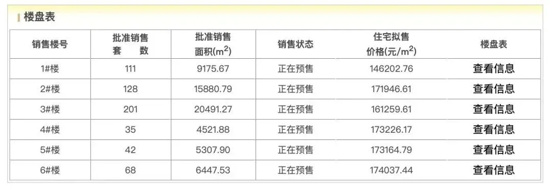 这次开盘,共计585套房源,除了1号楼和3号楼的价格稍低一些;2号楼、4号楼、5号楼、6号楼的价格都在17万多。
