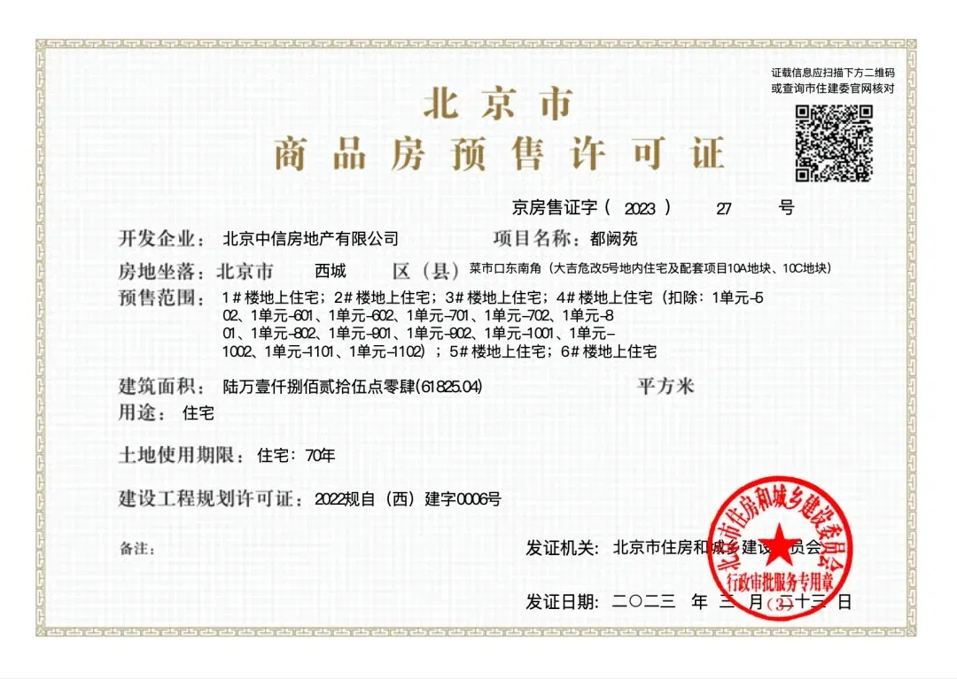 3月22日,北京市住建委官网公示了,都阙苑(中信城四期)的预售证了;这也就意味着距离开盘选房的时间不远了。