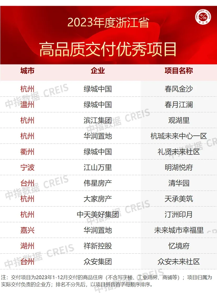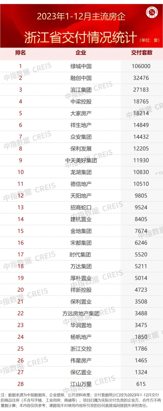 在浙房企全年交付35万套,前十房企交付规模占比超7成,绿城中国超10万套领跑