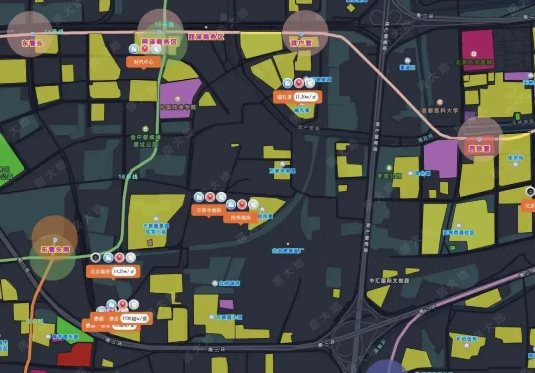 一、万泉寺地块:位置在二环到三环之间,万润风景小区西侧;地块起始总价119.86亿。未来销售指导价预计11.2万。