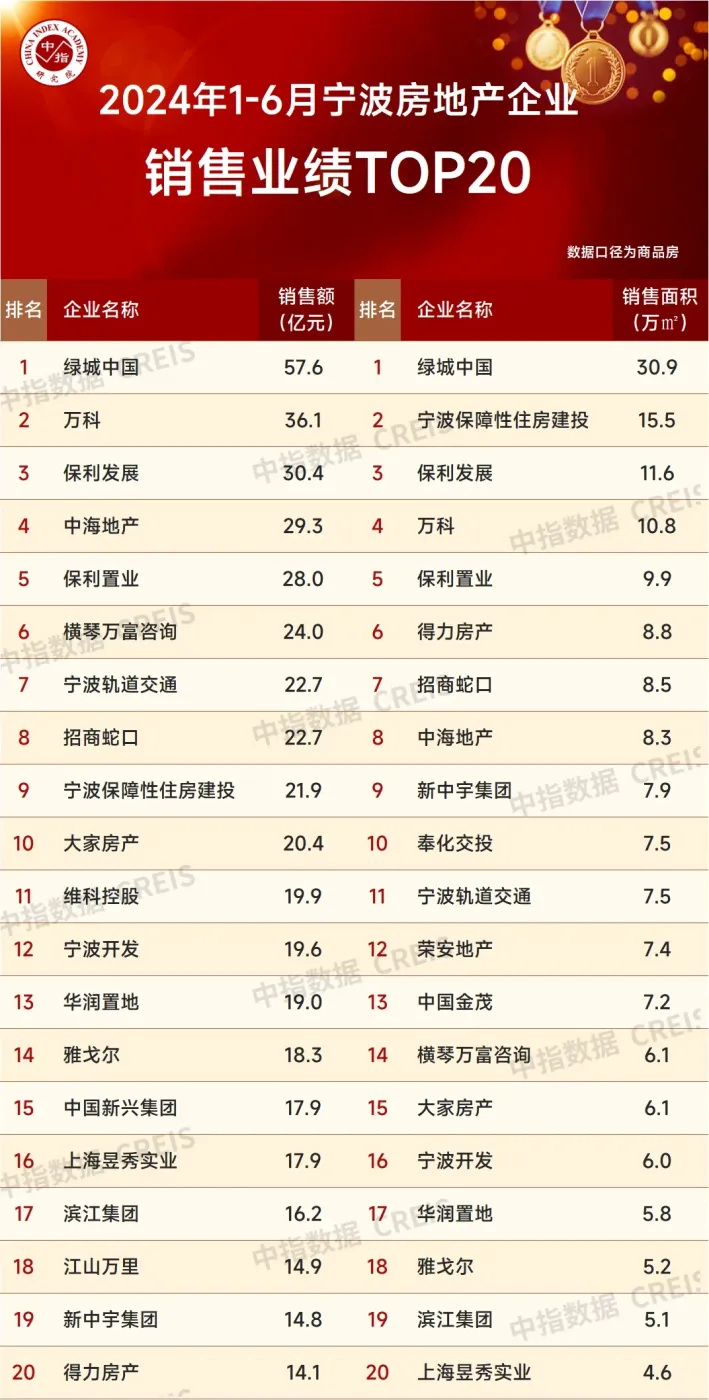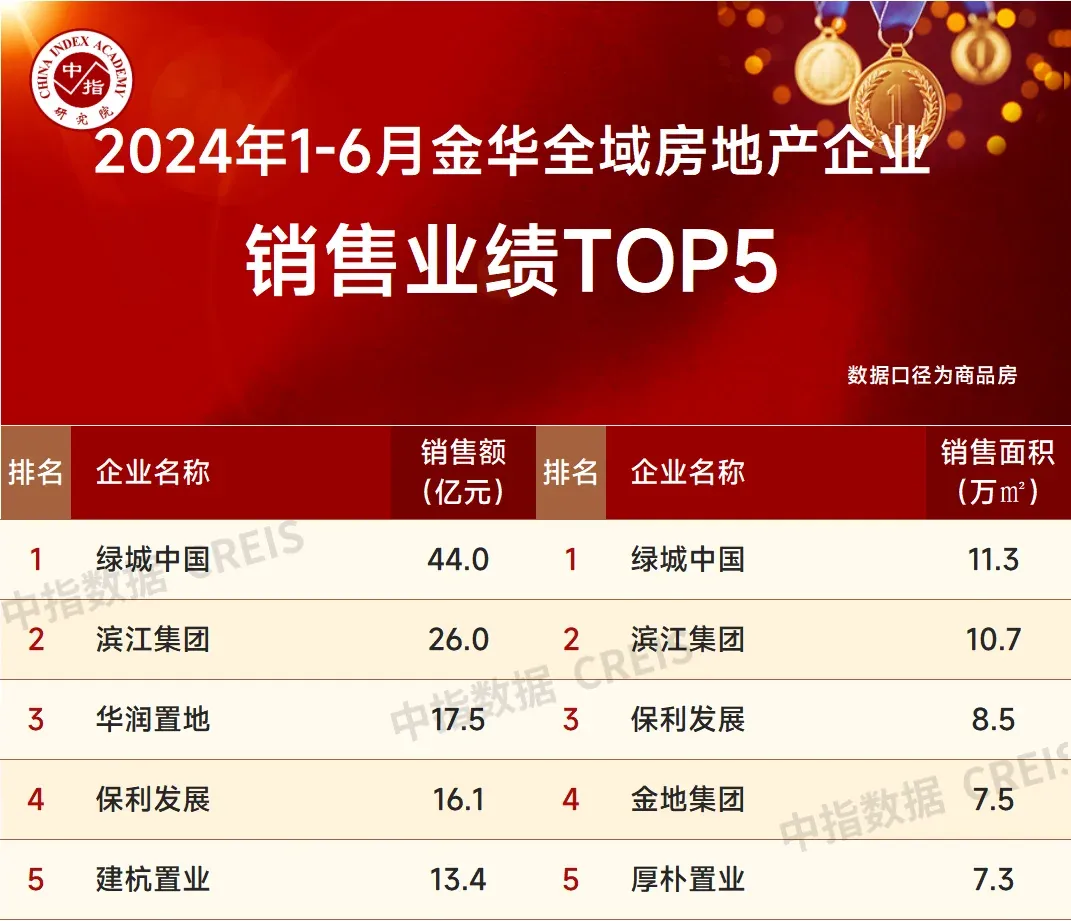 2024年上半年,各大房企在浙江市场的销售额表现中,头部效应再放大,呈现为三大特征: