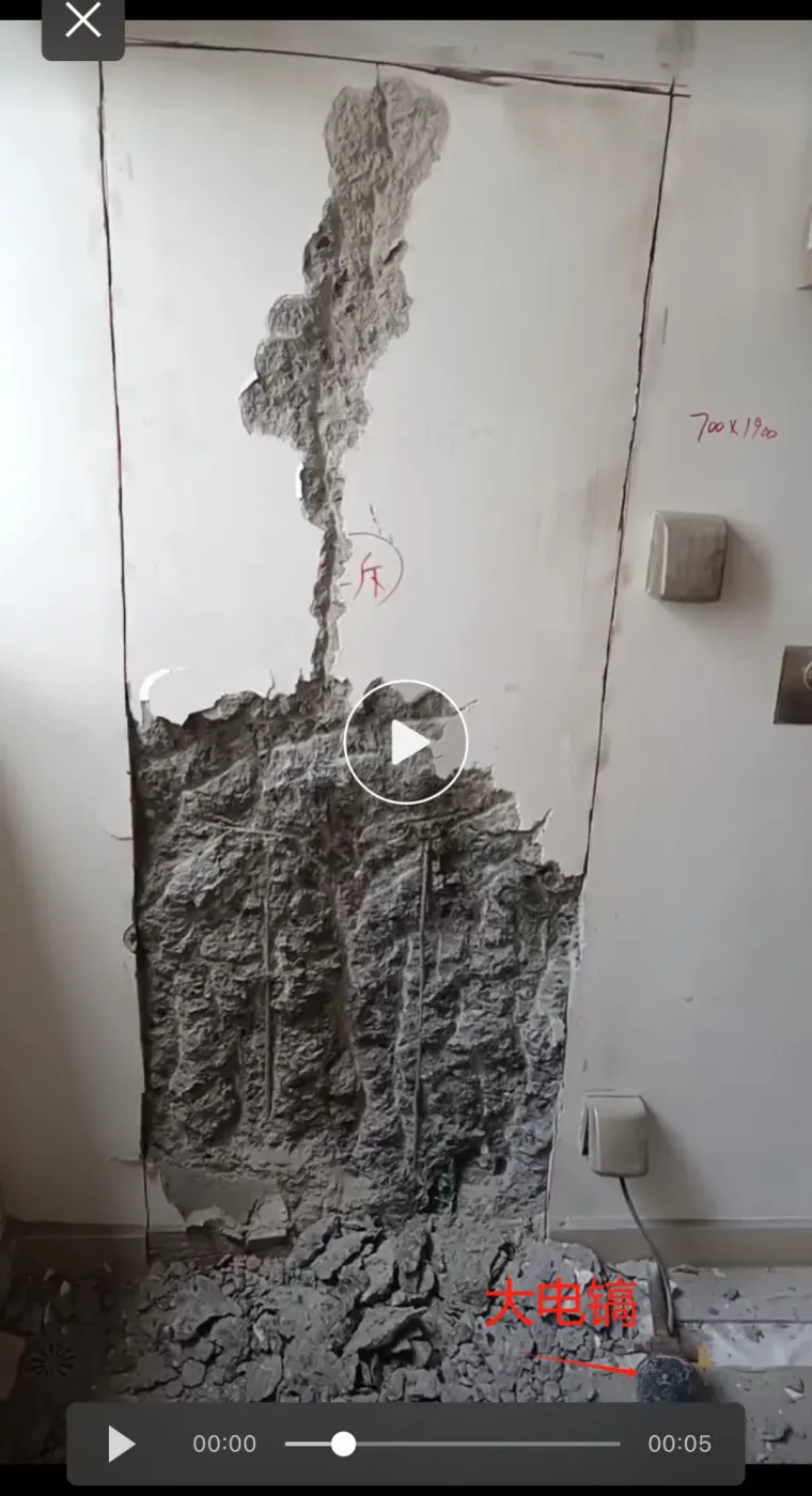 最近一则消息在各大社群发酵,一户业主装修时砸穿墙体,钢筋裸露,冲击钻都干烧了。