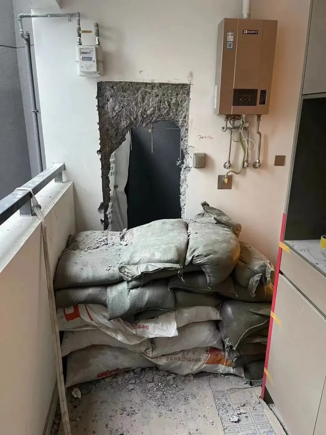 荔湾这个业主违建还算轻的,要是砸到承重墙,估计肠子都悔青了。