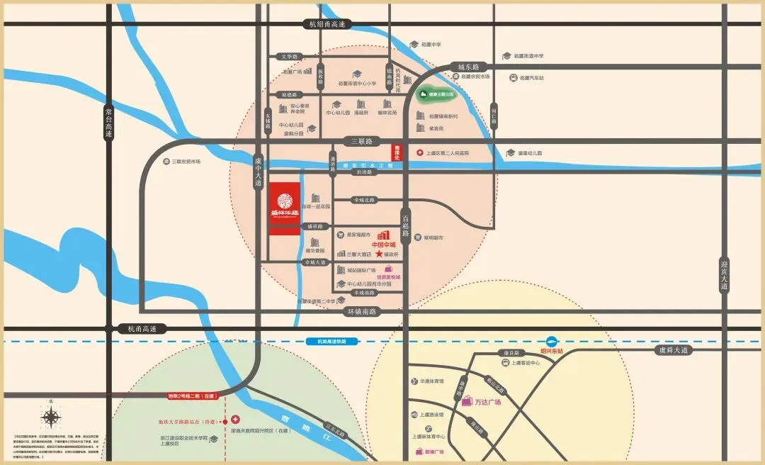 该楼盘位于崧厦街道核心区,紧邻百崧路、南北中心大道等主干道,近杭甬高速崧厦互通,速达上虞主城区和杭州湾上虞经开区,就算自驾去杭州、宁波也方便。