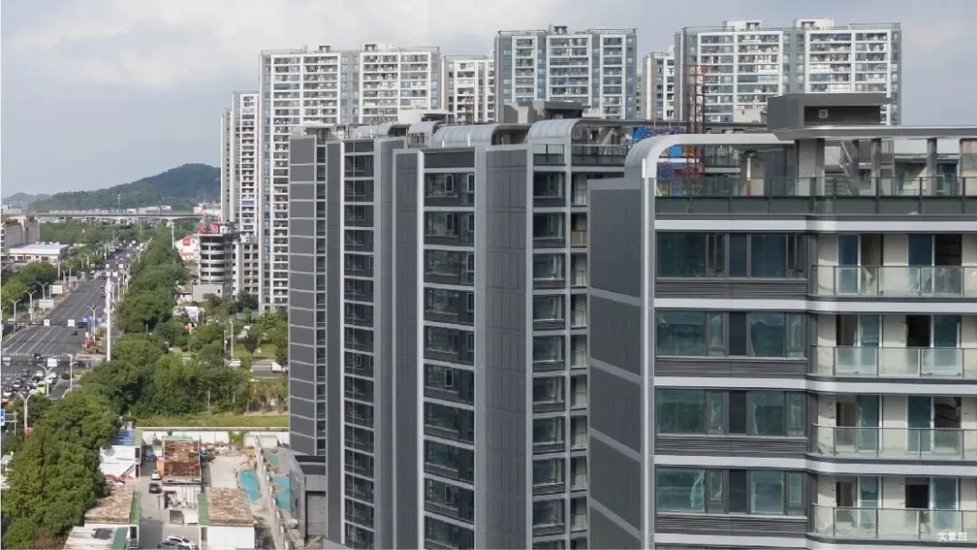 外立面采用保温一体板加深色金属构架,搭配大面积三玻两腔玻璃,化提升采光与视野。