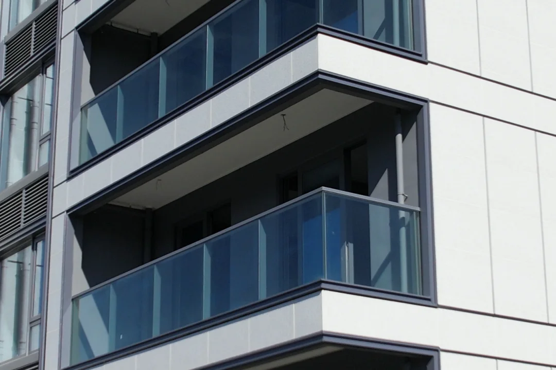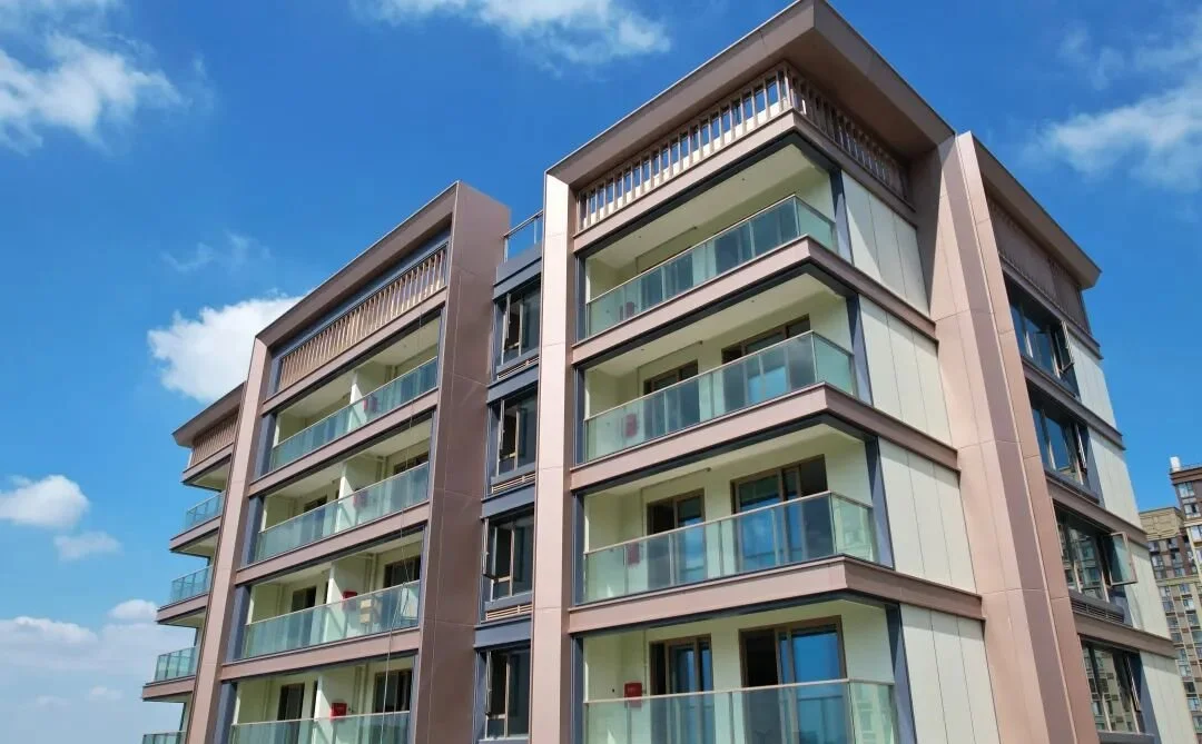 根据现场情况来看,5幢楼已实景呈现,外立面是香槟金铝板、顶部金属格栅、通透的大面积玻璃栏板组成的现代幕墙。