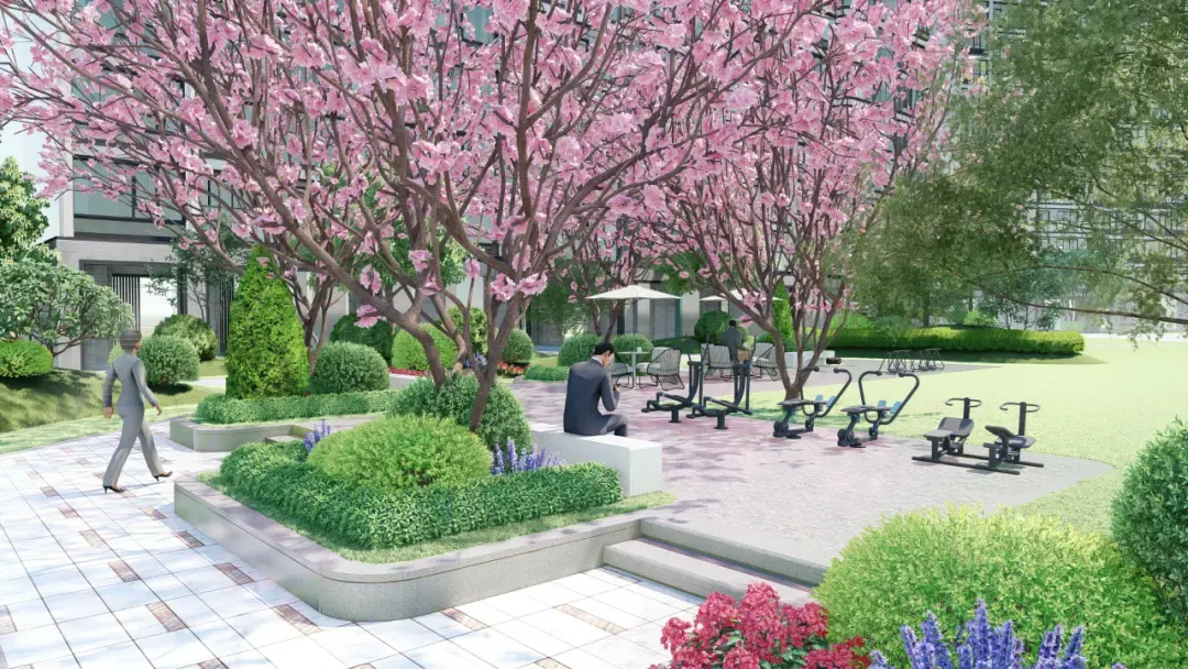 再结合不同季节的应季组合,如“春樱、夏叶、秋桂、冬梅”,四季皆有景,季季景不同,为业主的日常生活增添自然仪式感。