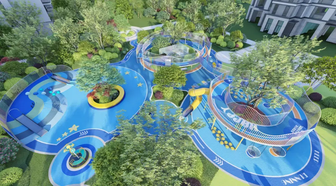 在金澜府,园林从不只是观赏的风景,更是融合了儿童乐园、运动空间、休闲交流等全龄段功能的社区生活场。