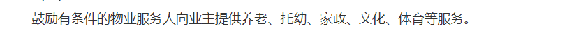 是新增了一条鼓励性条款——有条件的物业服务人向业主提供养老、托幼、家政、文化、体育等服务。