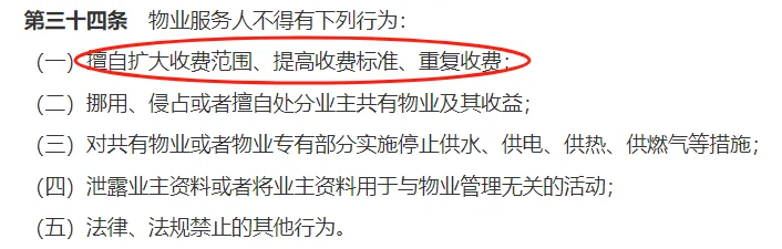 原条款仅列举了“提高收费标准”和“重复收取物业费、保证金、押金”三种情形,而事实上一些物业服务人通过设置名目繁多的附加收费项目规避。