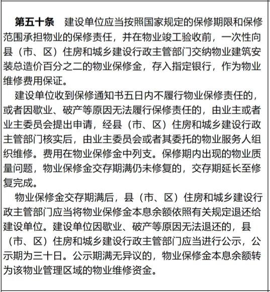 但现在删去第五十条,将房屋质量问题的责任人归属于开发商,物业可以起到“中间人”的作用,不承担房屋维修。