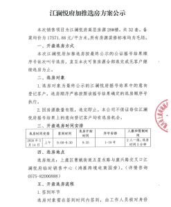 1. 江澜悦府推出28#楼32套高层毛坯房源,备案均价17571.88元/平方米。2. 选房将按公证摇号结果顺序进行。3. 选房持续至所有房源售完或无客户继续选房为止。
